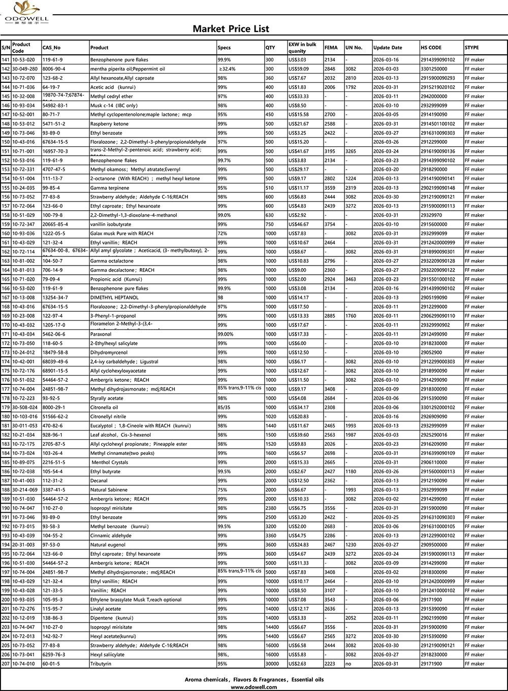 Odowell-قائمة أسعار السوق-2026.3.1-2026.3.31